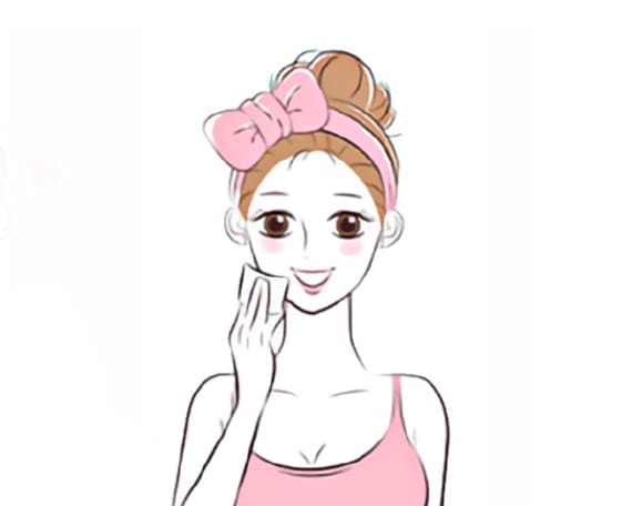 クレンジング後、ローションをコットンにたっぷり浸して首から顔にかけて軽くパッティングします。