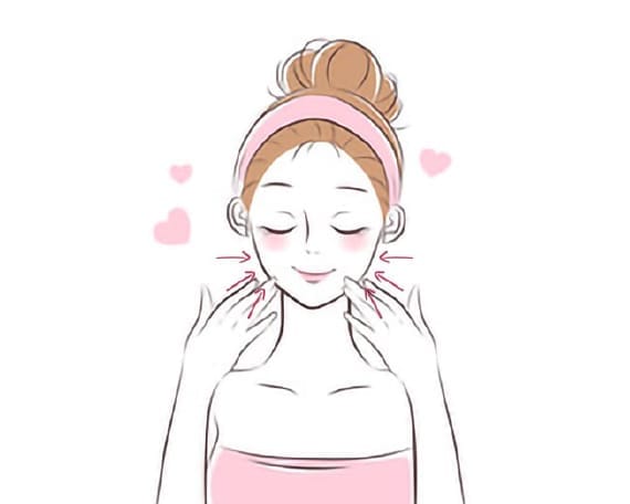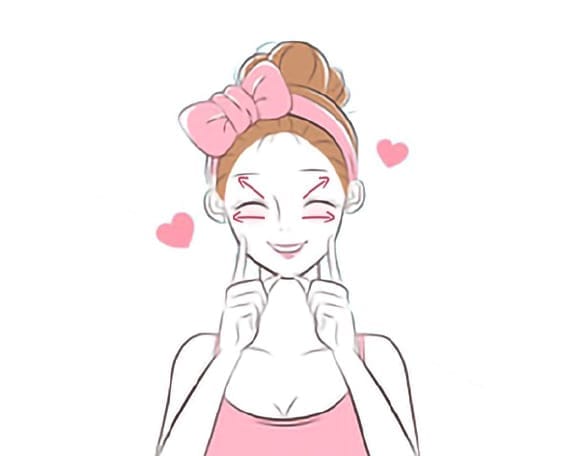 エッセンスを指の腹で顔の中心から外側へ、下から上に向かってパックのように肌を覆うくらい塗布します。